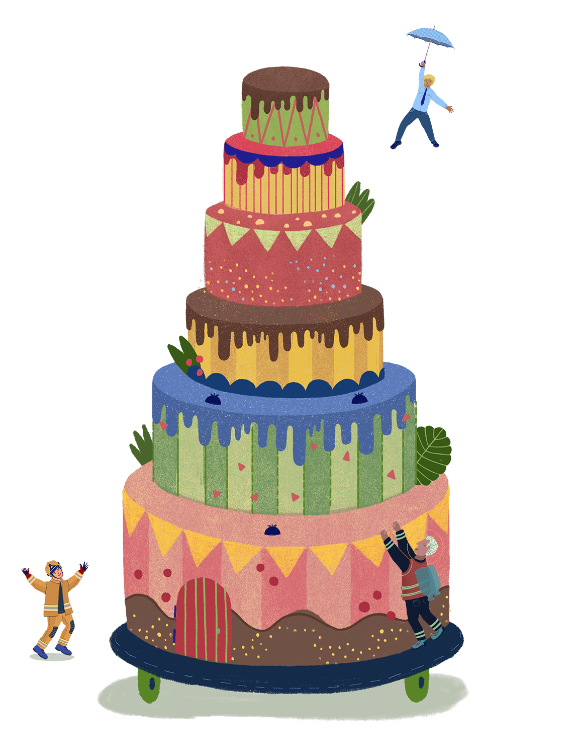 Your cake is decorated with culturally relevant symbols for each country. So it can be just as spectacular on the outside as it is on the inside.